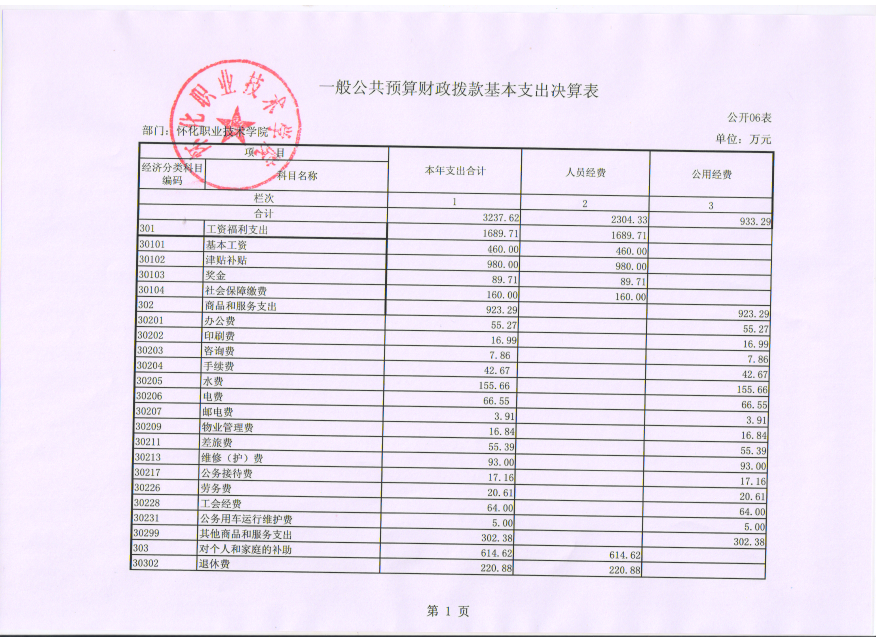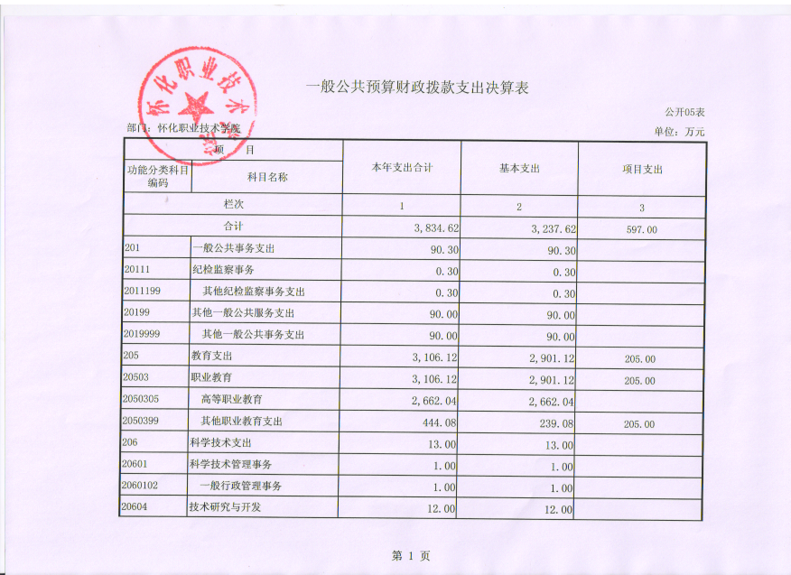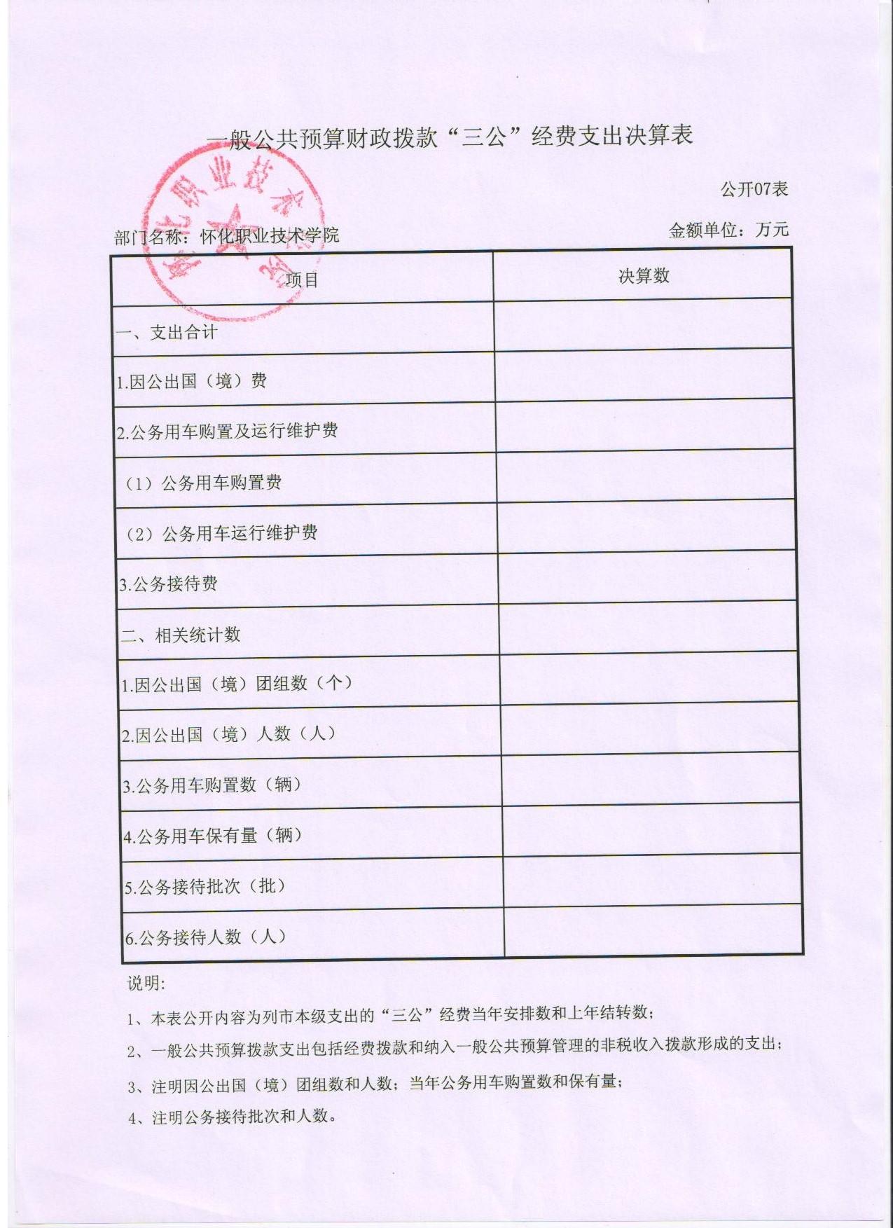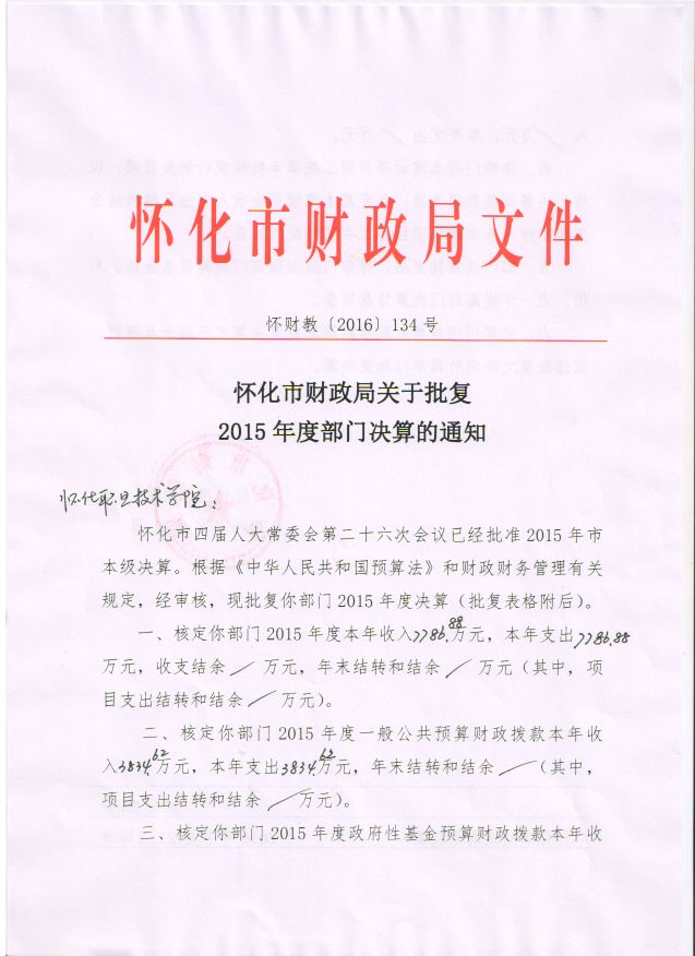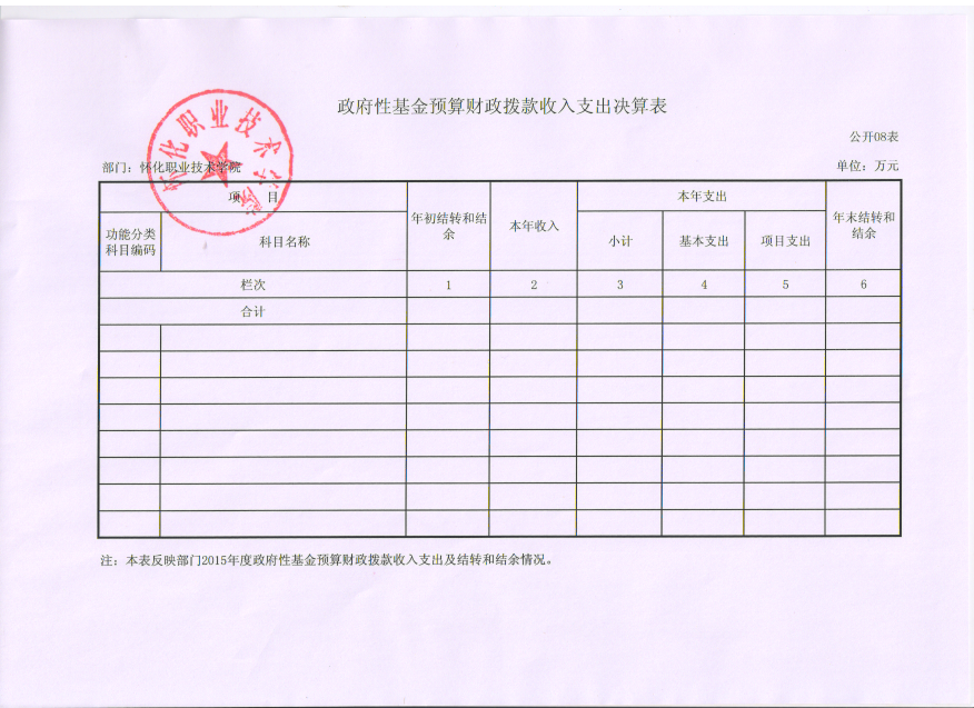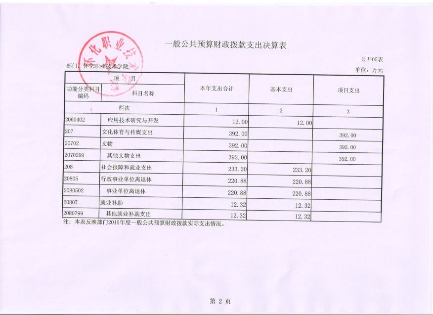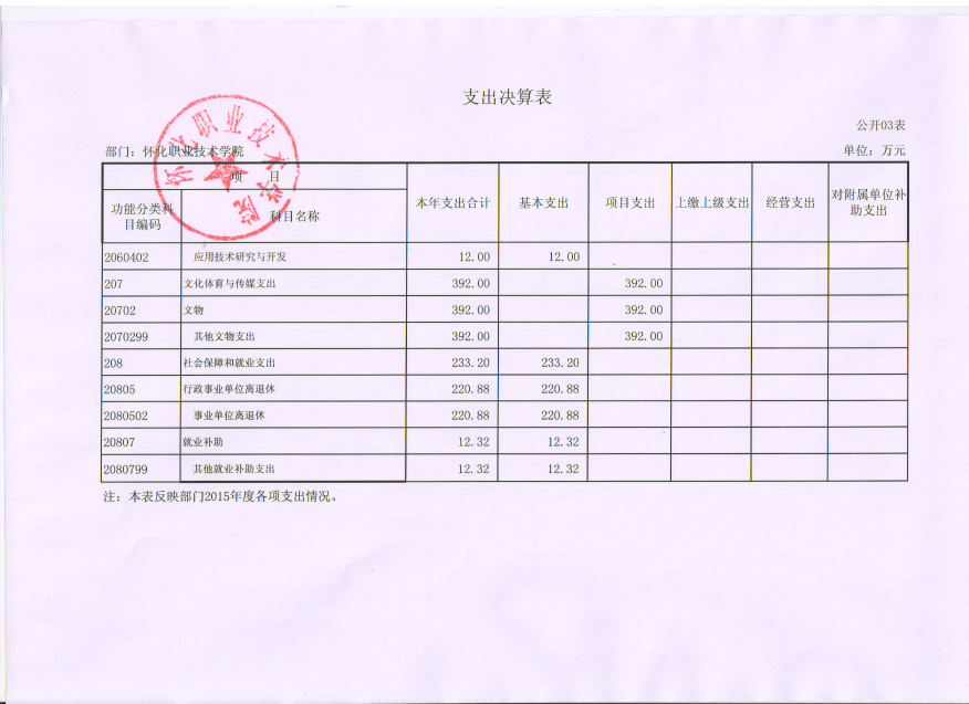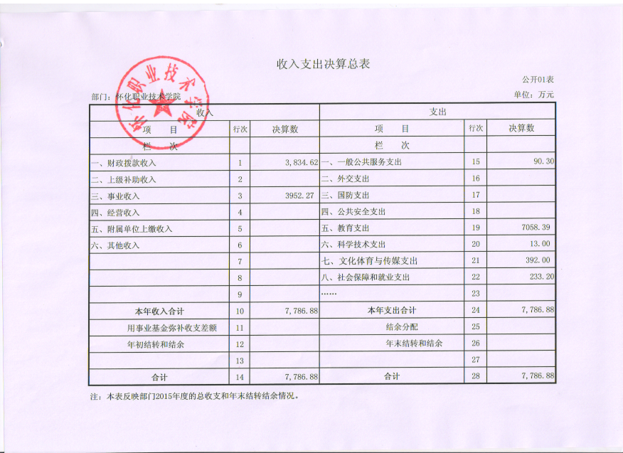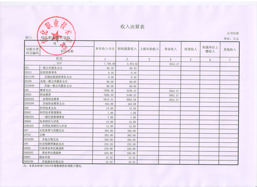 怀化职业技术学院2015年度部门决算公开说明